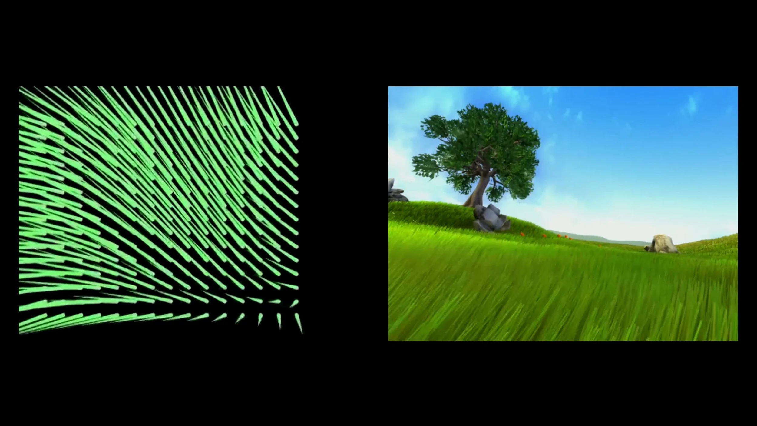 “Apparently today computer animation is taking the lead. Our subject is the development and creation of digital animation. If, for example, a forest has to be covered in foliage, the basic genetic growth program will be applied, so that ‘trees with fresh foliage’, ‘a forest in which some trees bear four-week-old foliage, others six-week-old foliage’ can be created. The more generative algorithms are used, the more the image detaches itself from the appearance as found and becomes an ideal-typical.”